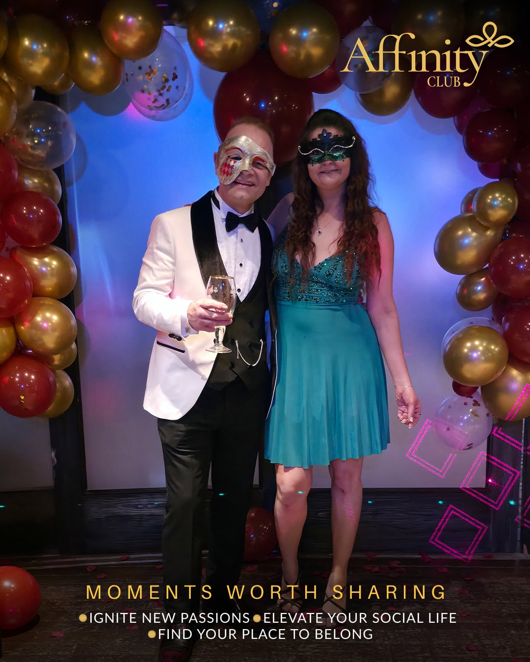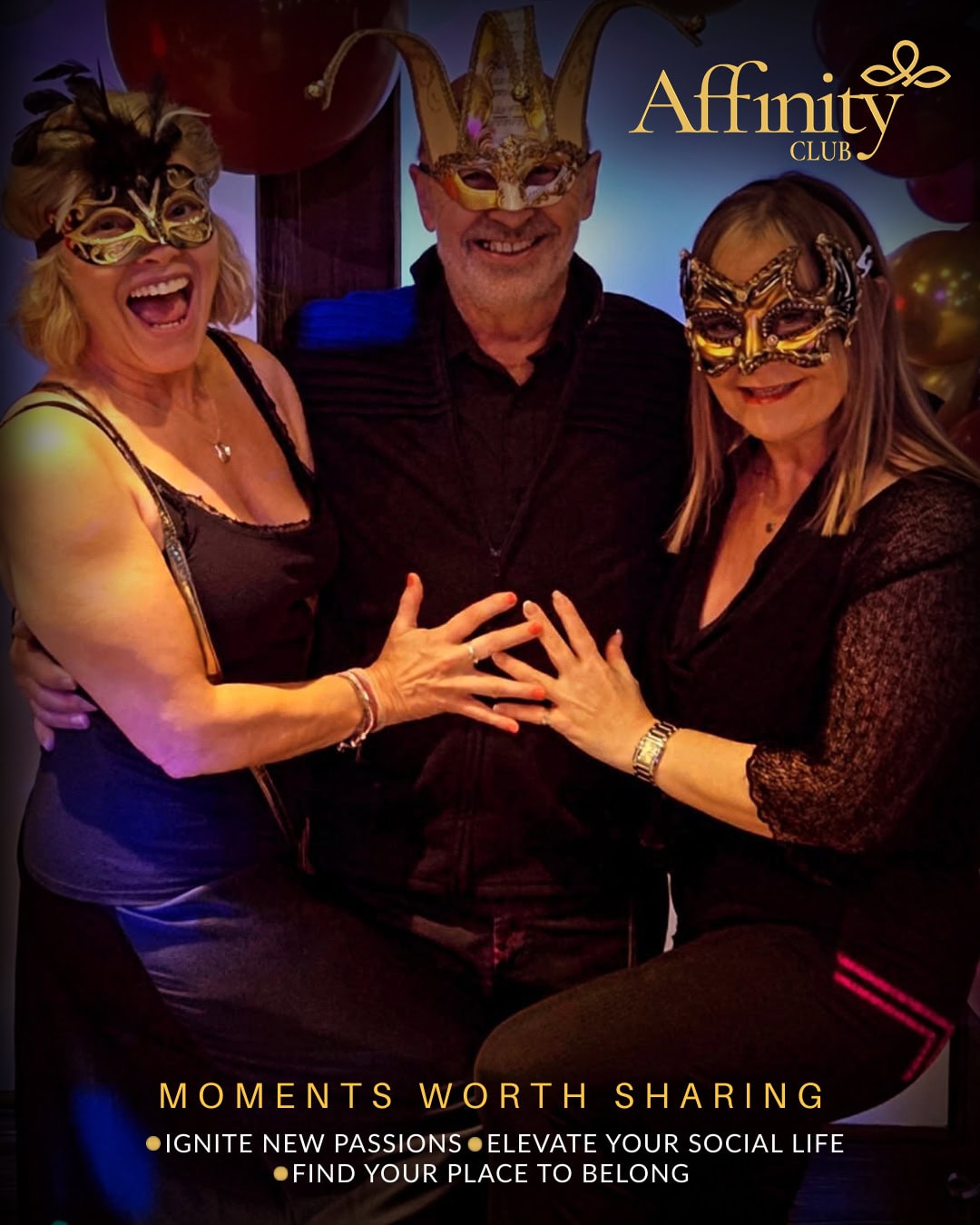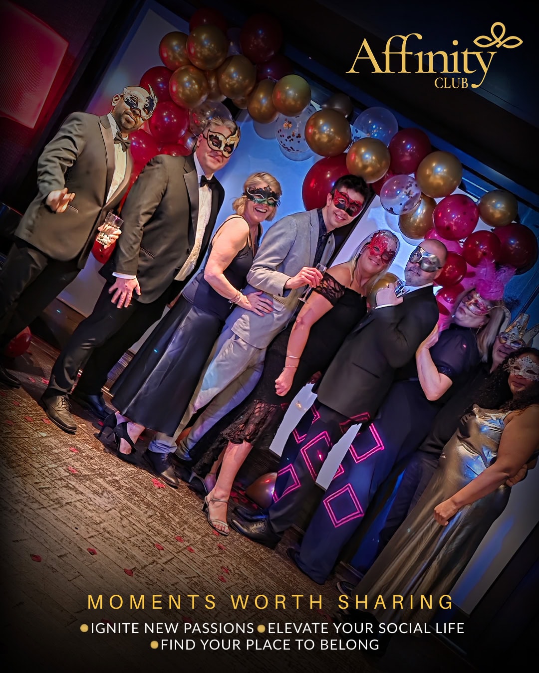Shimmering lights, bold masks and a captivating atmosphere set the tone from the moment guests arrived. Whether members came with friends, partners or flying solo, the energy in the room was warm, relaxed and effortlessly welcoming — exactly what Affinity is all about.